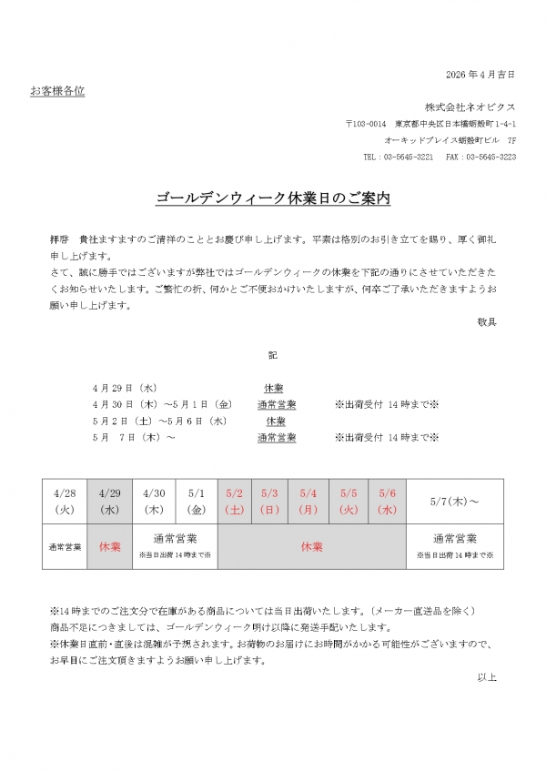 期間中、お客様には大変ご不便をお掛けいたしますが、どうかご了承くださいますようお願い申し上げます。